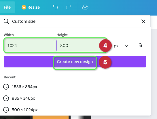 13. ใส่ขนาดที่ต้องการ จากนั้นกดปุ่ม Create new design