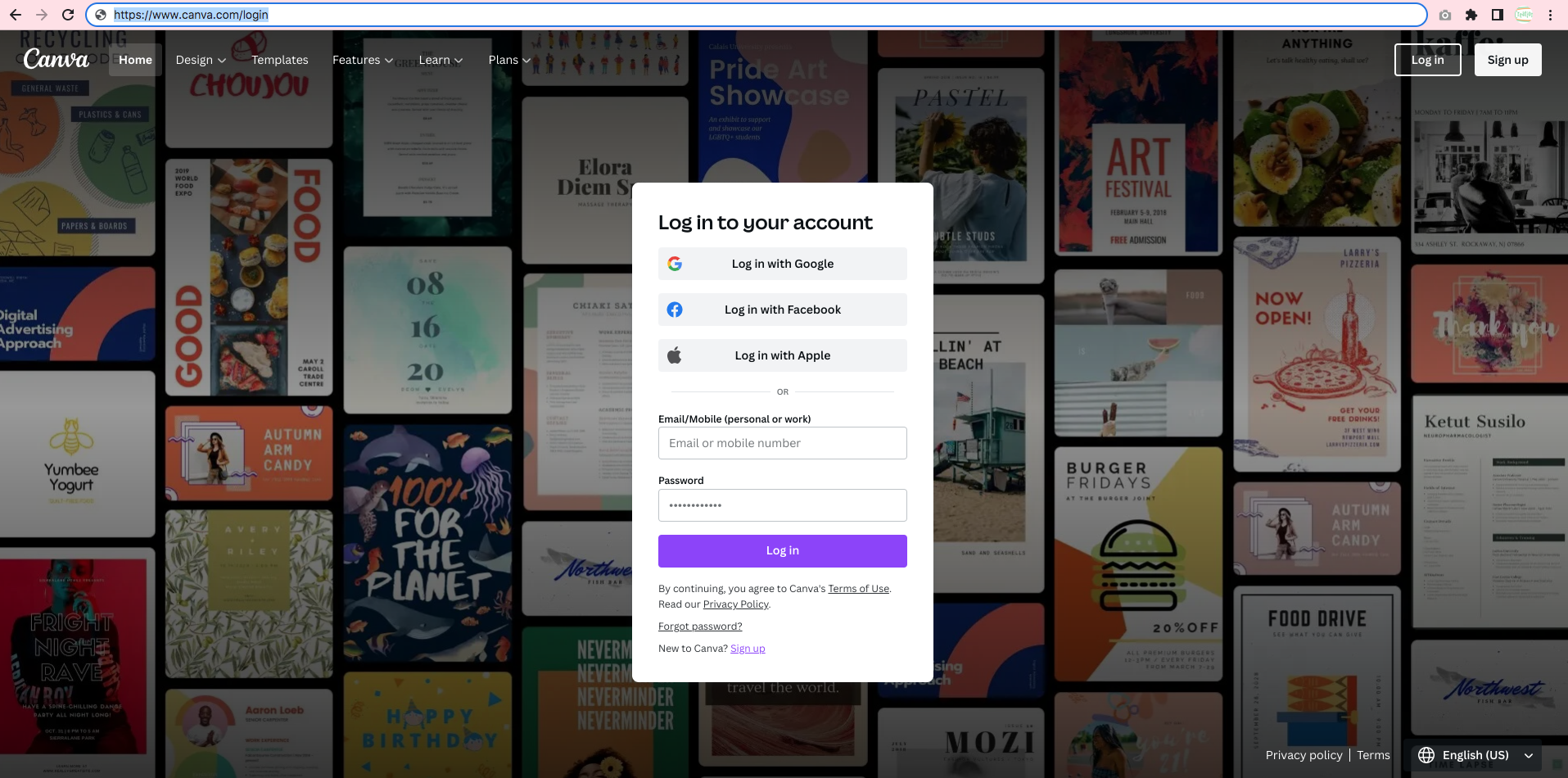 1. เข้าไปที่เว็บไซต์ canva.com จะมีให้ท่านเลือกเข้าระบบ 3 แบบด้วยกัน