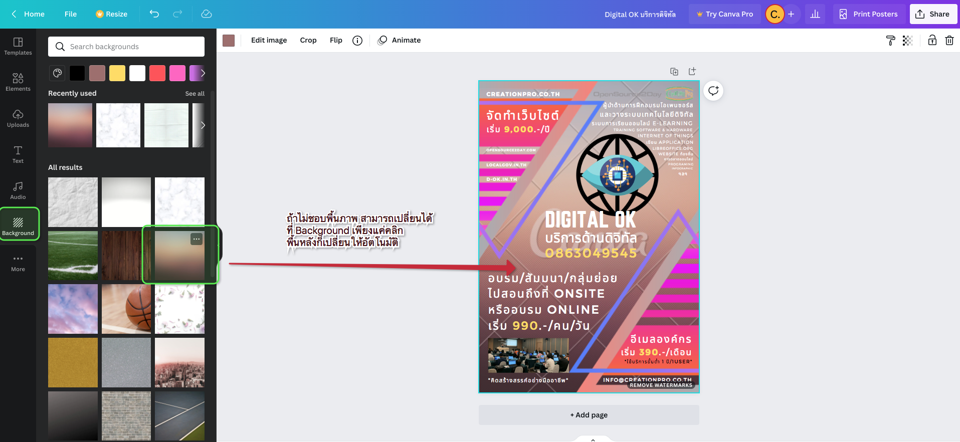9. ถ้าไม่ชอบพื้นภาพ สามารถเปลี่ยนได้ที่ Background เพียงแค่คลิก พื้นหลังก็เปลี่ยนให้อัตโนมัติ