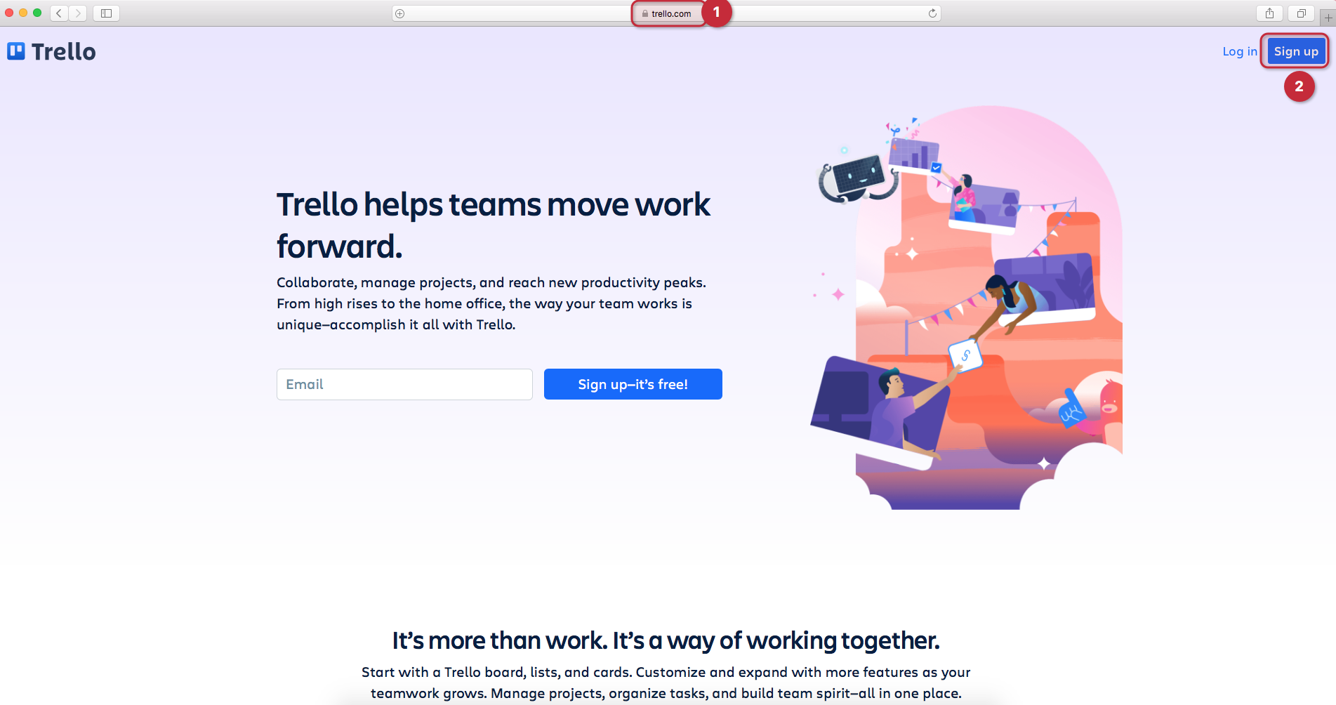 1. ไปที่ URL พิมพ์ชื่อเว็บ trello.com และเลือก Sign up เข้าสู่ระบบตามที่แต่ละท่านสะดวก