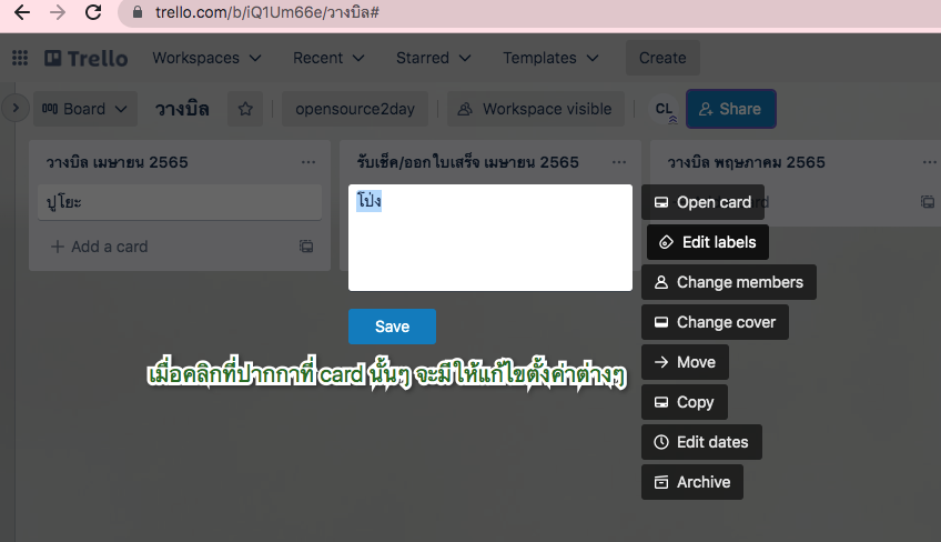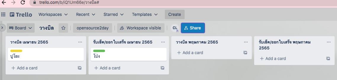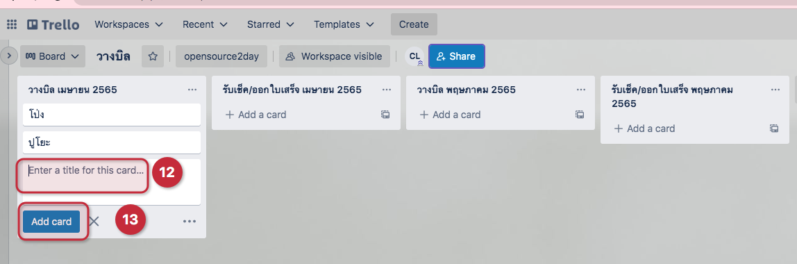 5. เมื่อสร้างภาระงานใหญ่/โครงการงานแล้ว ก็มาสร้างรายการย่อยลงไปอีก ที่ Add card