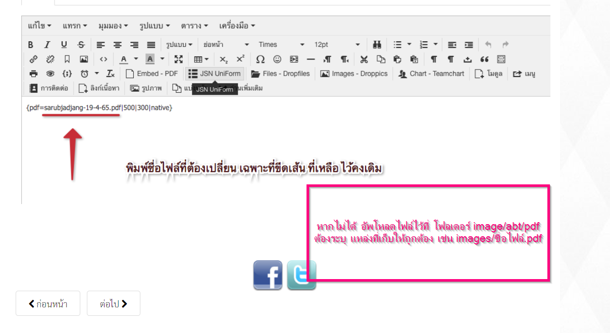 จากนั้นจะพบ ปุ่ม อัปโหลดไฟล์ ให้ทำการ คลิก จากนั้นเลือกไฟล์ที่ต้องการ ไฟล์ pdf ต้องเปลี่ยน ชื่อเป็น ภาษาอังกฤษ เท่านั้น ห้ามเว้นวรรค