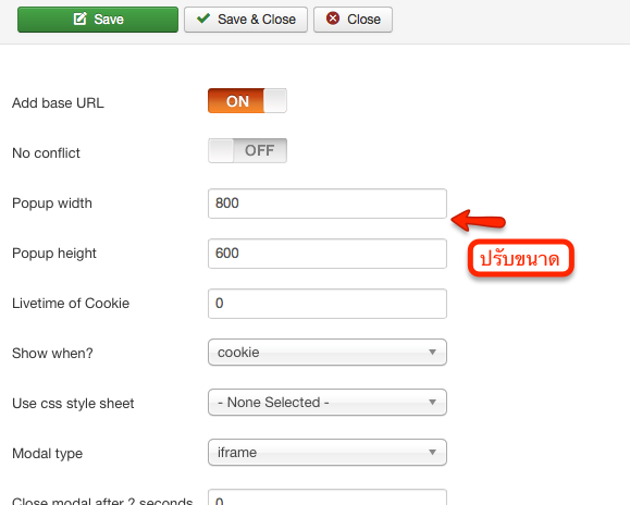 กำหนดขนาดรูปที่ต้องการแสดงผลได้ตามขนาดไฟล์ที่เตรียมไว้