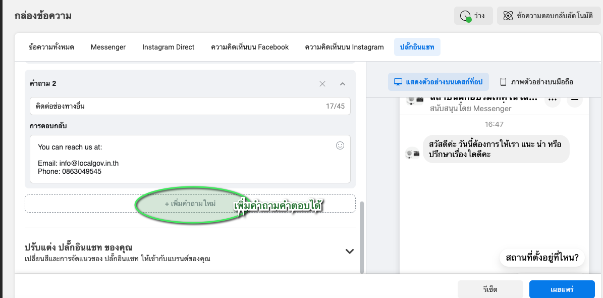 จากนั้นแก้ไขในส่วนของการสนทานาโต้ตอบ ใส่คำถามคำตอบ ตามต้องการ
